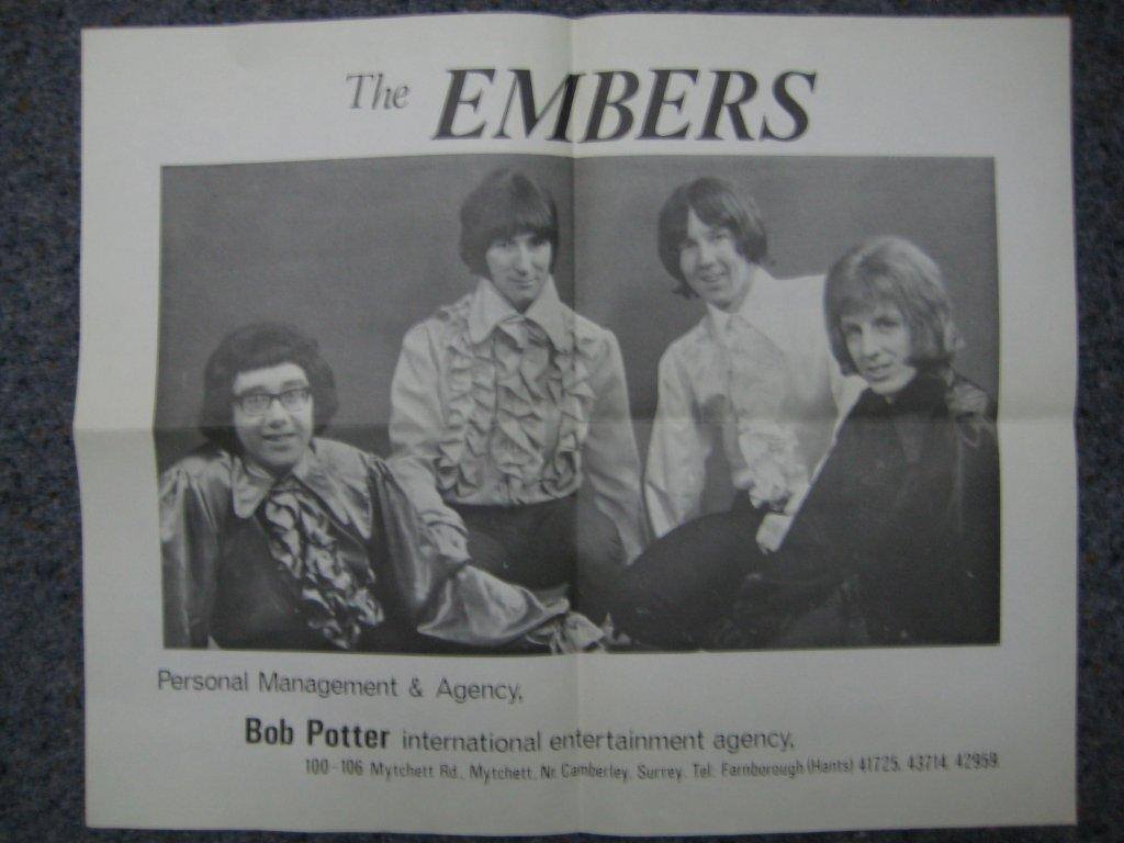 The Present Tense and The Pityful supported The Embers at Tiles, Soho on 15 April ’67. On 1 October ’69, The Embers were one of the many bands, including Sky, Wishful Thinking, The Late, Canterbury Tales, Crazy Paving, Chimera, and Magic Alice that played a benevolent concert at Samantha’s Club, as the Agincourt, Camberley was called for a time. This was compered by Dave West and also featured the Radio 1 D.J. Ray Moore.The Village Hall, Hartley Witney hosted The Embers on 18 December ’70, and the next year, on 6 March ’71, St. Luke’s Hall, Overton did the same. At some point after 2009 the bands track “Looking Glass” appeared on Pop Cycles Vol.12, as the opening track on the second disc.