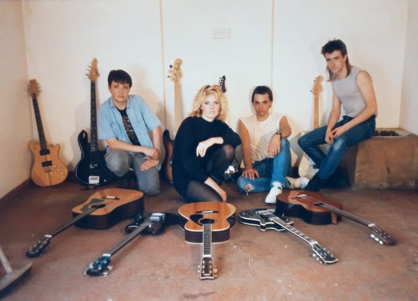 (c’86-’87) Keith Davies (guitar), Alex Marler (vocals), Paul Dreczko (keyboards), and Rob Selway (bass).