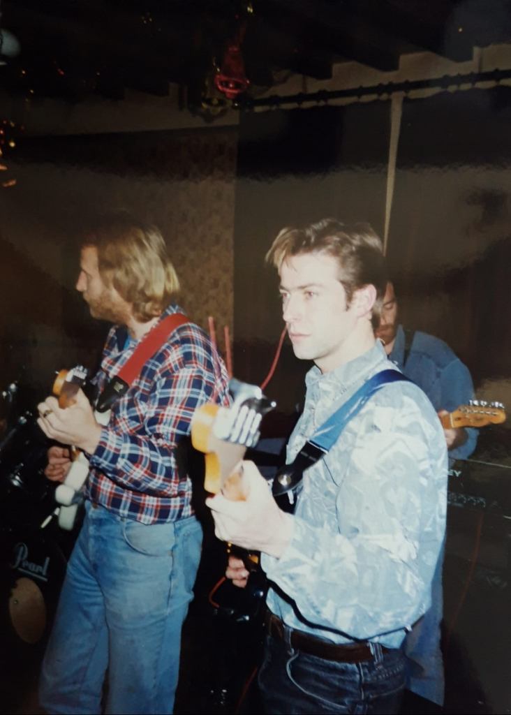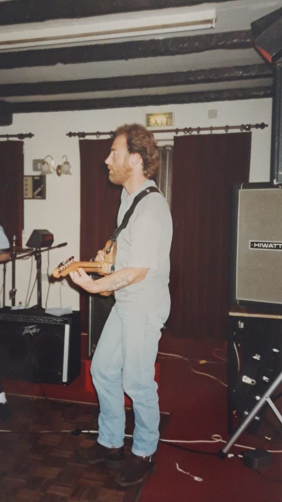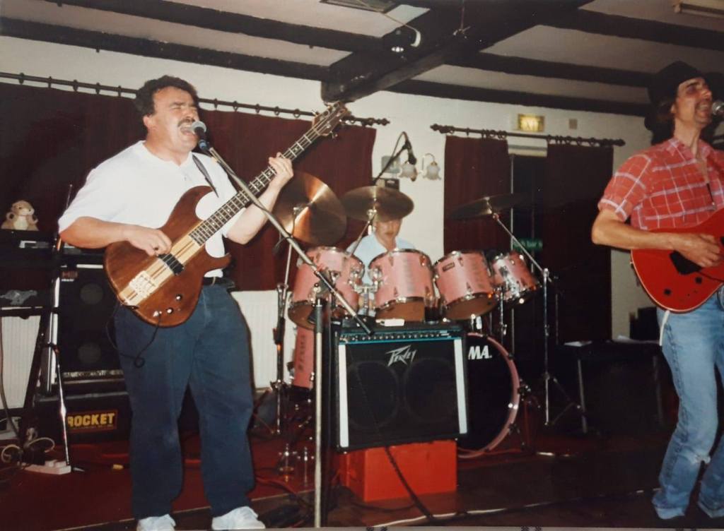 The band kicked of ’92 on valentine’s day back at The Abinger Arms, and returned to The Royal Oak eight days later, on 22 February ’92. They rolled into The Cricketers, Westfield on 4 April ’92, before hitting The Abinger Arms once again on 2 May. The White Hart, Frimley was also visited that month, on 21 May. July caught the band back at The Royal Oak (4 July ’92) and The Abinger Arms (11 July ’92) once again. A drive out to Ockham’s Black Swan, aka Mucky Duck, on 12 September, was followed by another return visit to The Royal Oak on 30 September ’92. A trip toward the big smoke on Halloween, saw the band performing at The Grey Horse, Kingston on 31 October ’92. In the lead up to Christmas ’92 the band appeared at The Abinger Arms. Abinger with Rex Goldsmith on drums and Steve “Whitestrat” Wilkie on guitar.