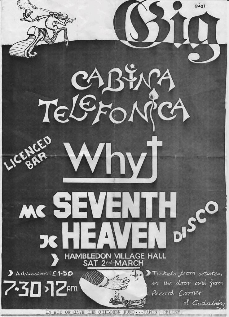 On 2 March 85, the group appeared with Why at the Village Hall, Hambledon. The next month, on 11 April ’85, they visited the Wilfrid Noyce Centre, Godalming, with supported provided by Technik. There was also a gig at Milford’s Village Hall.