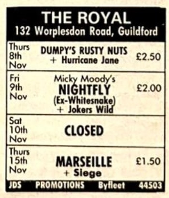 A demo cassette single, titled “Wait for Me“, hit the scene in ’87, with ‘Red Light‘ on the flipside. On 13 June ’87, Siege supported Dumpy’s Rusty Nuts at Basins, Portsmouth and while the headliners receive a princely £425, Siege got £50. Siege returned to Basins on 1 July ’87, to headline after Antigua opened. On the 2 October ’87, Siege kicked off that month’s campaign of sound attacks at The Royal Oak, Passfield, then up to Bumbles, London the next night. Basins was visited again on 7 October ’87 for a £60 paycheck and four days later the band were in Birmingham, on 11 October, at The Mermaid. Almost two weeks passed before the bands next appearance at Tunnel Club, London on 24 October, followed by The Royal Standard, London on 27 October, and the Village Hall, Liphook on 31 October ’87. But, by early ’88 the band had disintegrated.