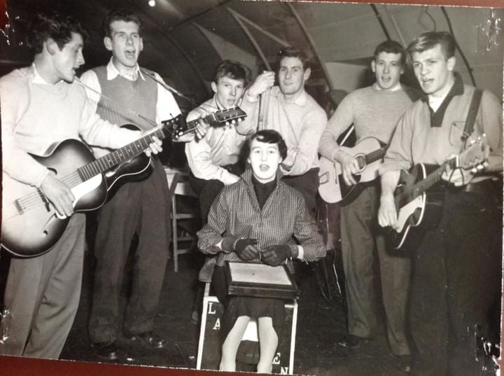 (c’56) Daphne Maddocks (washboard), Alan Smith (guitar) Paul Muddell (guitar), Mick O’Rourke (guitar), Bob Jacombs (guitar), ? (drums), and ? (tea chest bass).
