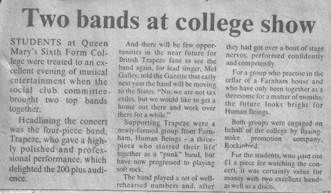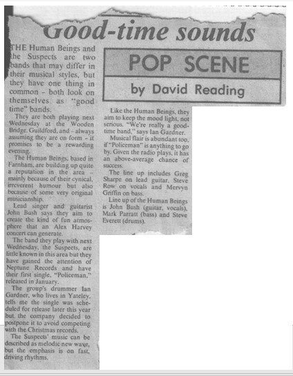 The band also competed in the “Rock and Pop Contest” at the Top Rank Suite, Reading and performed on a roof at one (possibly in ’81) of the Free Fest Guildford events at the University of Surrey. Human Beings kicked off a ‘local’ tour on 22 August ’81 at the Sussex Hotel, Bognor Regis; followed by August 23