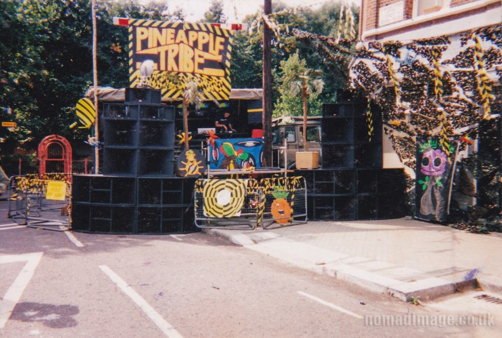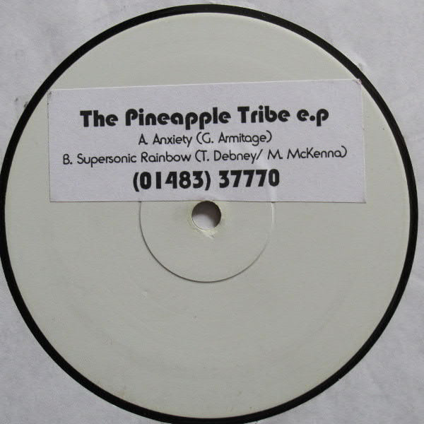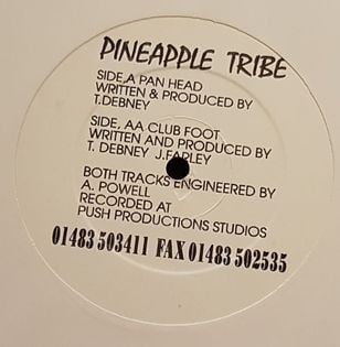They would subsequently become a regular feature at Notting Hill Carnival and had a presence at the Glastonbury Festival. They self-released a number of records on the Pineapple label. The 12″ ‘The Pineapple Tribe EP‘ [PINEAPPLE 001] carried “Anxiety” on the A-side, with “Supersonic Rainbow” on flip. There was a second 12″ [Pineapple 002] ‘Pineapple Tribe Vs. Pushanco – Untitled‘ that lent further into breakbeat / progressive house. The three tracks – “Shank“, and two versions of “Pfp” – were all written by Armitage, recorded at Path Studios, and mastered at Keith “Jah Tubby” Swan’s mastering studios, JTS Studios.