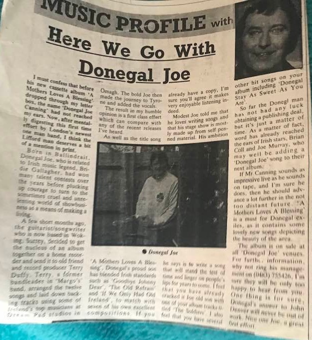 He released two cassette LPs, the first titled ‘A Mother’s Loves a Blessing‘ got some positive coverage in The Irish Post. Prior to release, Canning recorded his songs on a personal tape recorder and sent the tape to Terry Duffy. After Duffy arranged and recruited a number of musicians to lay down the backing tracks, they met in Tyrone to record the vocal track. The second cassette LP ‘Home to Donegal‘ was recorded in well-known Donegal musician Charlie Dolan’s Studio, Argery Ballindrait, County Donegal.