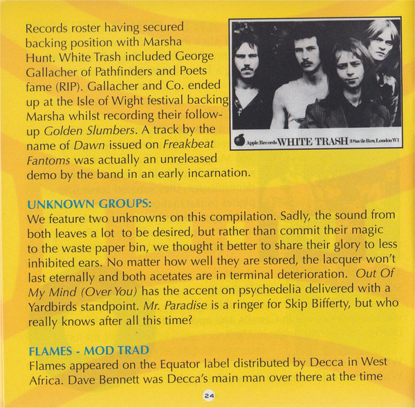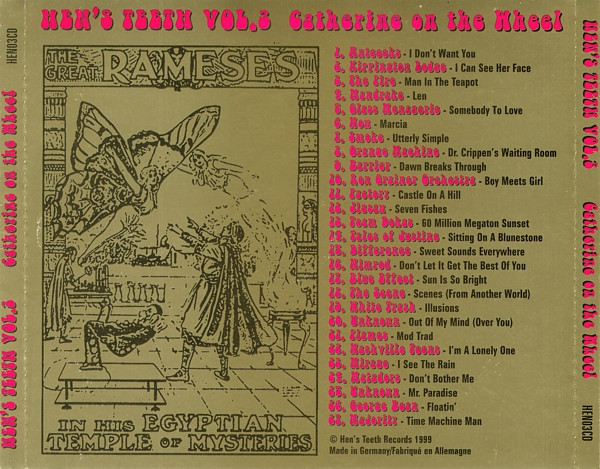 Hen’s Teeth delved into the archives again with Hen’s Teeth Vol. 3: Catherine on the Wheel [HEN03CD], released in ’99, with the 27th track, Mr. Paradise, only latterly rumored to be accreditable to Strange Brew. A five CD compilation of remastered psychedelia was released by Rubble [RUBCDBOX2] on 9 March 2015, titled: A Herbal Mixture of Psychedelic Remedies and Freakbeat Fantoms. This also carried Mr. Paradise, still accredited to unknown.