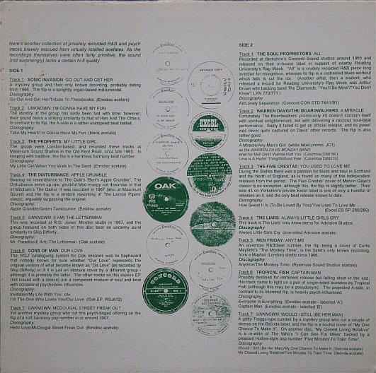 In ’96, the vinyl LP, Purple Heart Surgery Volume 2 (Featuring 14 Beat and Psychedelic Acetates from The ’60s) was released on the Modern Records [MOD 2] label. This carried (I am) The Letterman, but was accredited to an unknown band at the time. That same year, The Hen’s Teeth label reissued the tracks from side 1 of this release on Hen’s Teeth Volume 2: Blocked! – Rare Beat & Psychedelia, [HEN02CD], including (I am) The Letterman, with the other 22 privately recorded R&B and Psych tracks, rescued from virtually totaled acetates, with the track once again accredited to an unknown band. Track 21, (I am) The Letterman, was later rumored to be Strange Brew, though this has not been verified.