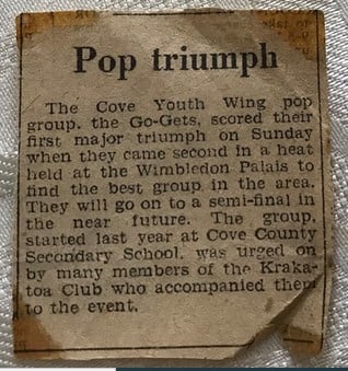 Based at Cove County Secondary School the Krakatoa Club ran from ’60 to ’88. It was probably better known for its discos and sports (mixed basketball, 5-a-side football), but it also encouraged and hosted live bands.