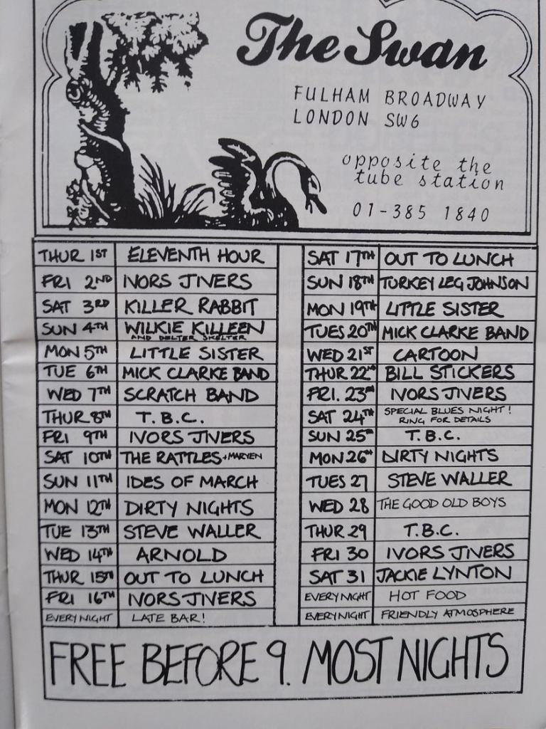 An early Ricky Tick Club flyer when it was at the Woodenbridge featuring Hogsnort Rupert supporting the Blues Syndicate, from the collection of Peter Philips. Picture courtesy of Ben’s Collectors Records