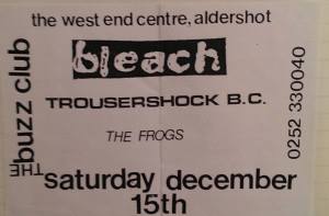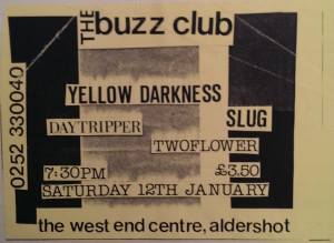 13 January 1990 and Vinegar Blossom play The West End Centre. Source: ipernity.com A Turntable Friend, Alan Mansbridge, Aldershot, Andreas Hering, Angel Talk, Arts Centre, Bennet, Bierkeller, Blam-A-Bit, Bracknell, Bristol, Crondall, Danny Hagan, Dave Driscoll, Echoey Groove Studio, Eleanor Linwood, Eusebio, Flowered Up, Gary Wollen, Germany, Here Comes Jordan, Malcolm Powell, Nelson Mandela Building, Patch Hannon, Paul Haskell, Paul Maguire, Phil Powell, Portsmouth, Portsmouth Polytechnic, Smuf, Steve Collings, Studio Poisson, Subtle, The Audience, The Buzz Club, The Charlatans, The Vinegar Blossom, University of Sheffield, Vinegar Blossom, West End Centre, You Can’t Be Loved Forever -