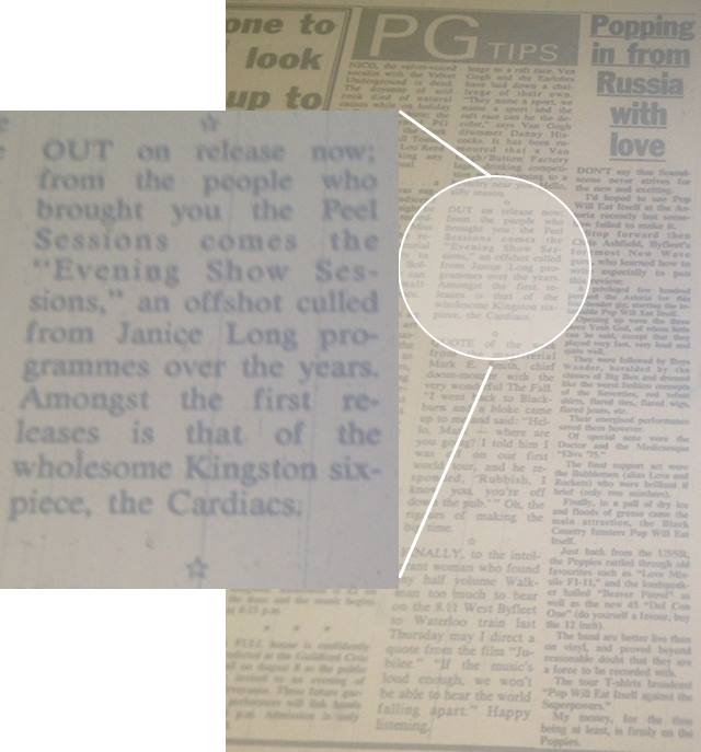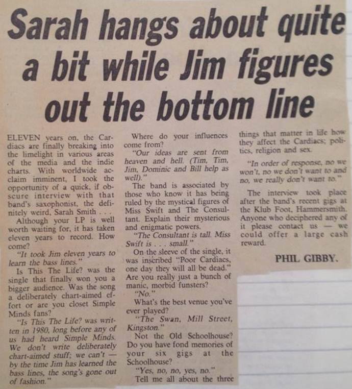 A small Screaming Lullibies clipping from Soundscene 26th April 1984