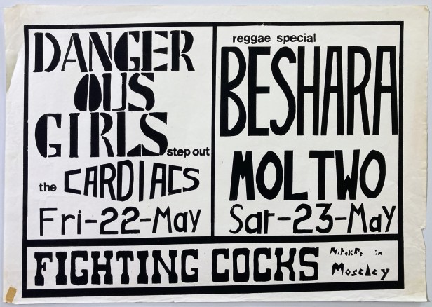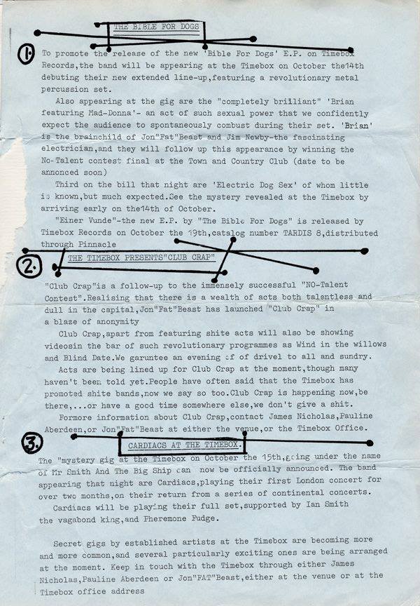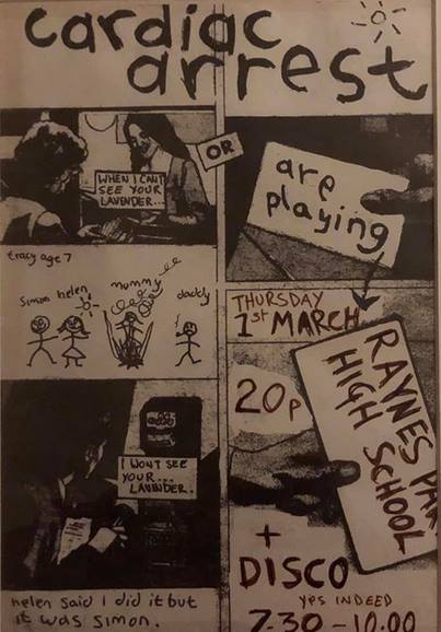 Another image of the flyer for 14 Jan 1984 Secreaming Lullabies gig with Dark Paradise, COW and Spin Dolls at The Old School House. Picture courtesy of Sharon Pilling.